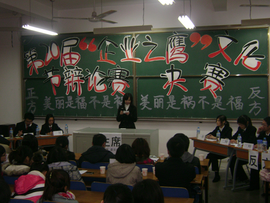 唇枪舌剑,妙语连珠。2009年11月15日晚7:00,经济英国正版365官方网站第二十届“企业之鹰”文化节辩论赛决赛在03-218教室举行。本次辩论赛由经济英国正版365官方网站分团委主办,分团委员工会学习部承办,是经英国正版365官方网站的传统特色活动。经英国正版365官方网站分团委书记谢超,辅导员彭慧、张学军及王娟老师为本场比赛嘉宾,比赛评委则由经英国正版365官方网站辩论队成员担任。