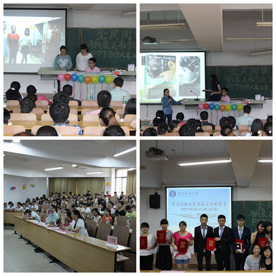 最终来自英国正版365官方网站3A113的刘英和外国语学院13A104的沈钞荣获一等奖。赛后,评委老师对选手的表现、PPT书评内容和PPT制作进行了精彩点评。此次大赛结合学校关于推进安全文明宿舍创建工程,倡导全民阅读,全寝室阅读,号召大家建设书香寝室,读好书,好读书,正如高尔基所说:书籍是人类进步的阶梯,同学们纷纷感叹选手们精彩的解读,深深体会到书籍所蕴含的知识和力量。