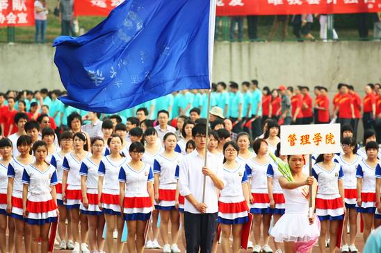 (学院旗帜迎风飘扬)