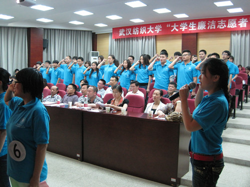 比赛开始前,40位廉洁志愿者进行了集体宣誓,承诺履行志愿者义务,为建设廉洁校园、廉洁中国而不懈努力!