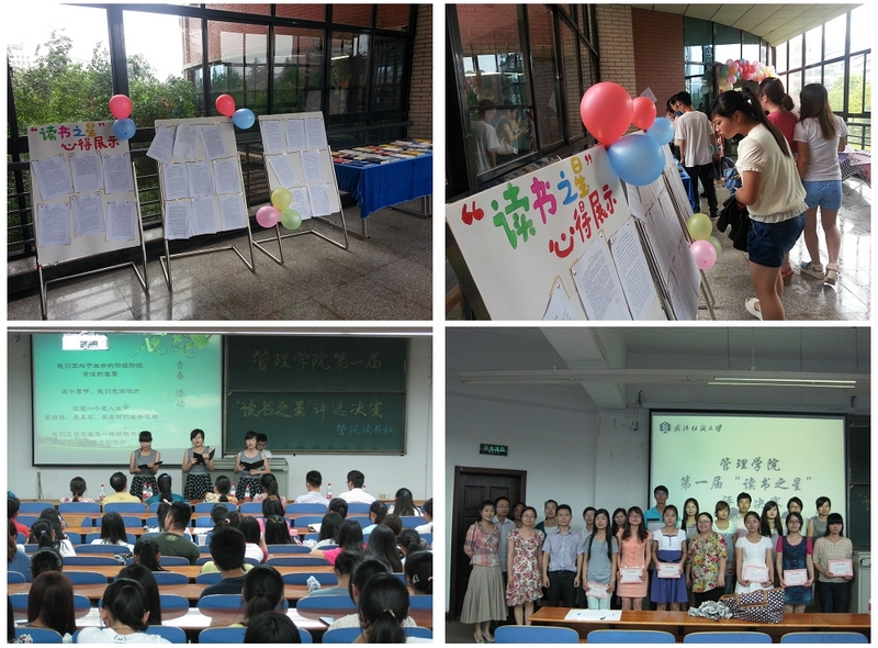 英国正版365官方网站从4月23日起开展“一月精读一本书”的经典诵读活动,要求每个人在一个月内精读自己买来的一本好书,通过边读边批注的方式做到学有所得。五月底,学院进行了读书心得演讲、橱窗展示等交流活动,最终推荐出十五名优秀选手参评读书明星,他们的读书心得将以专集的形式在院刊《管理之窗》集结出版。